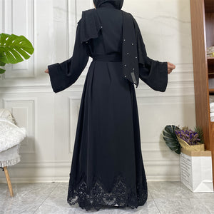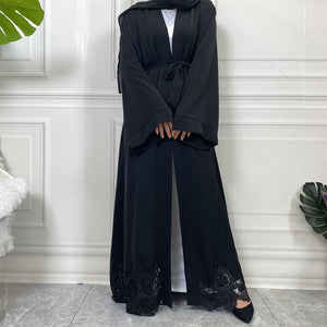 The versatile and classy Evah abaya is a must have in any modest wardrobe. This stunning piece has a luxury sheer embroidered lace trim along the bottom hem making it perfect to pair up with a coloured slip or abaya giving you endless style options. Added to this charming piece are invisible pockets making it practical and pretty.