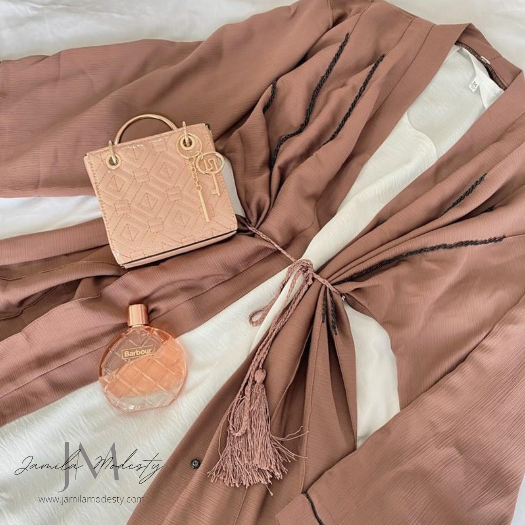 Package includes: x1 abaya, x1 matching hijab and x1 rope belt