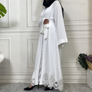Evah White Lace Open Abaya