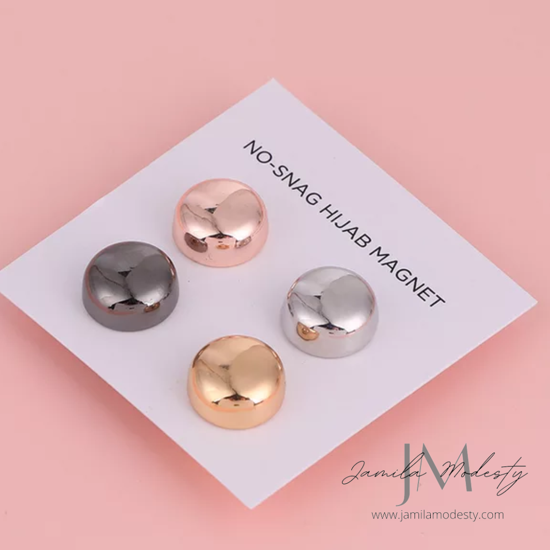 Our high quality, ultra strong, no-snag hijab magnets can now replace pins for a secure hold on even the softest fabrics. No more pin holes! The shiny finish give this set a luxe feel.