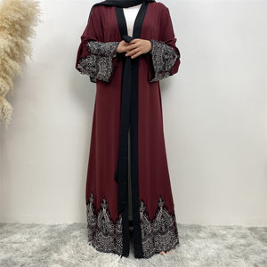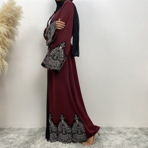 Niyah Black and Silver Lace Maroon Open Abaya