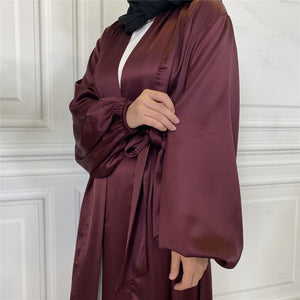 Stand out in our latest premium satin abaya with statement wudu friendly balloon sleeves and matching belt. The glamorous silky fabric makes it perfect to wear to an occasion and has an added feel of elegance. The added extras of pockets make it a must have for any season.